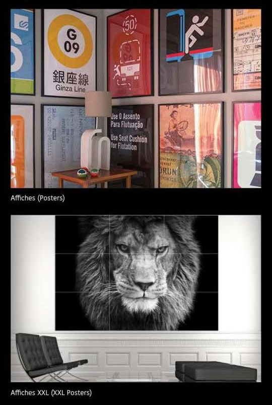 Vous pouvez imprimer des posters en grand format de toutes les dimensions standard (af- fiches 24"X 36", 17"X 22" etc.) ou non standard. L'impression d'affiche personnalisée vous per- met de réaliser les impressions grand format sur papier ou PP Syntec. L'utilisation, de papier an- ti-humidité spécialement conçu pour les affiches pour l'extérieur, associée à l'utilisation d'une col- le spéciale garantissant une durée d'exposition au soleil et aux intempéries.