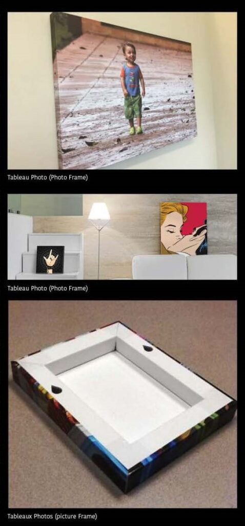 Haute définition d'impression et nuances de cou- leurs incroyables. Imprimez sur du lisse ou texture canvas. Avec possibilité d'impression aussi sur la bordure. L'épaisseur du tableau est de 1 pouce.