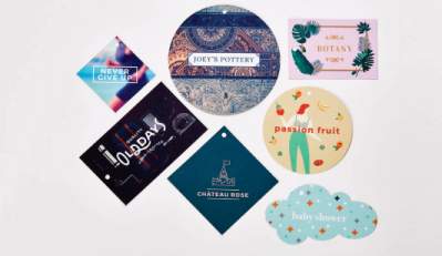 Si les étiquettes standards ne répondent pas à vos besoins, les étiquettes pliées sont la solution idéale pour accompagner vos produits avec toutes les informations utiles et nécessaires. Grâce au double espace disponible, elles peuvent indiquer les ingrédients de produits alimentaires, la composition de vêtements ou décrire l'histoire de votre marque.